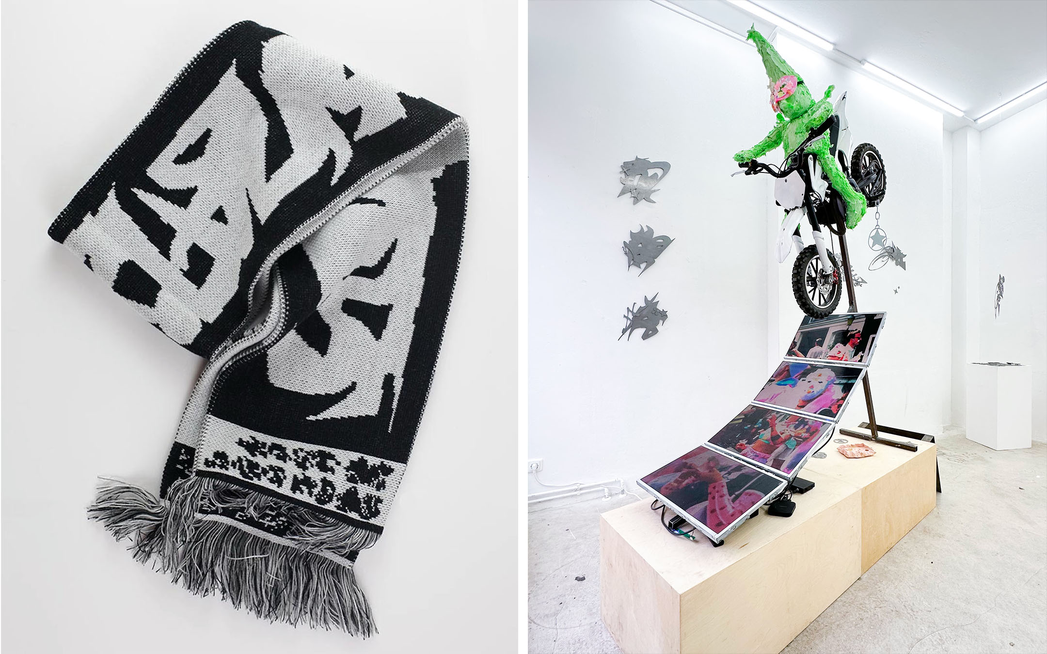 1 - Feu intérieur, 160cm X 20cm, acrylic & cotton, 2020 ; 2 - Big City Dreamers, Kulup26, Berlin, avec Maxim Tur et Katya Quel, 2025