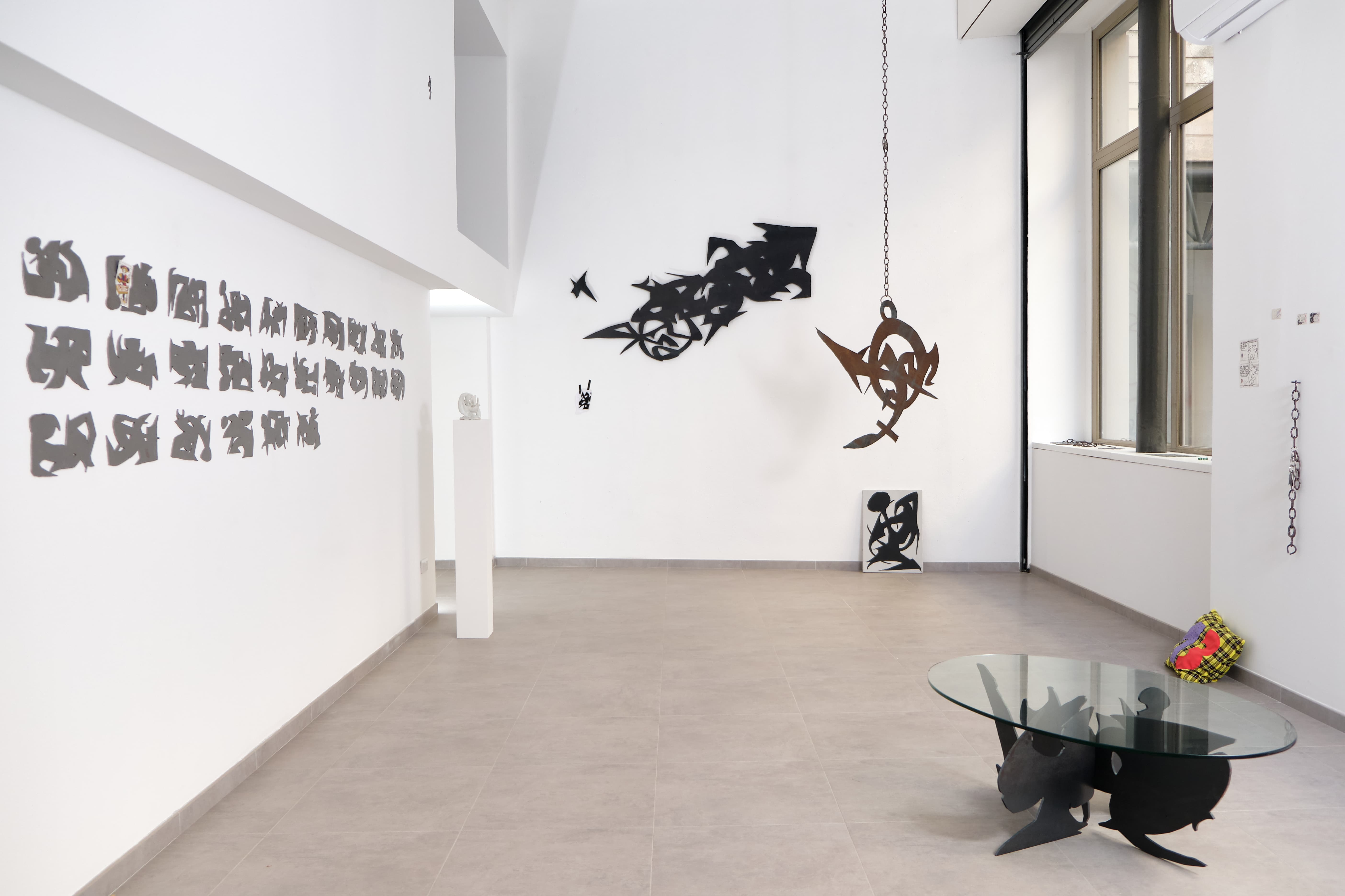 Derrière ces formes, Lou mène un processus : celui de la déconstruction des lettres, celles-là mêmes qu’il modelait déjà avec un simple aérosol, celles-là mêmes qui composent, une fois distordues, la base de son travail actuel :