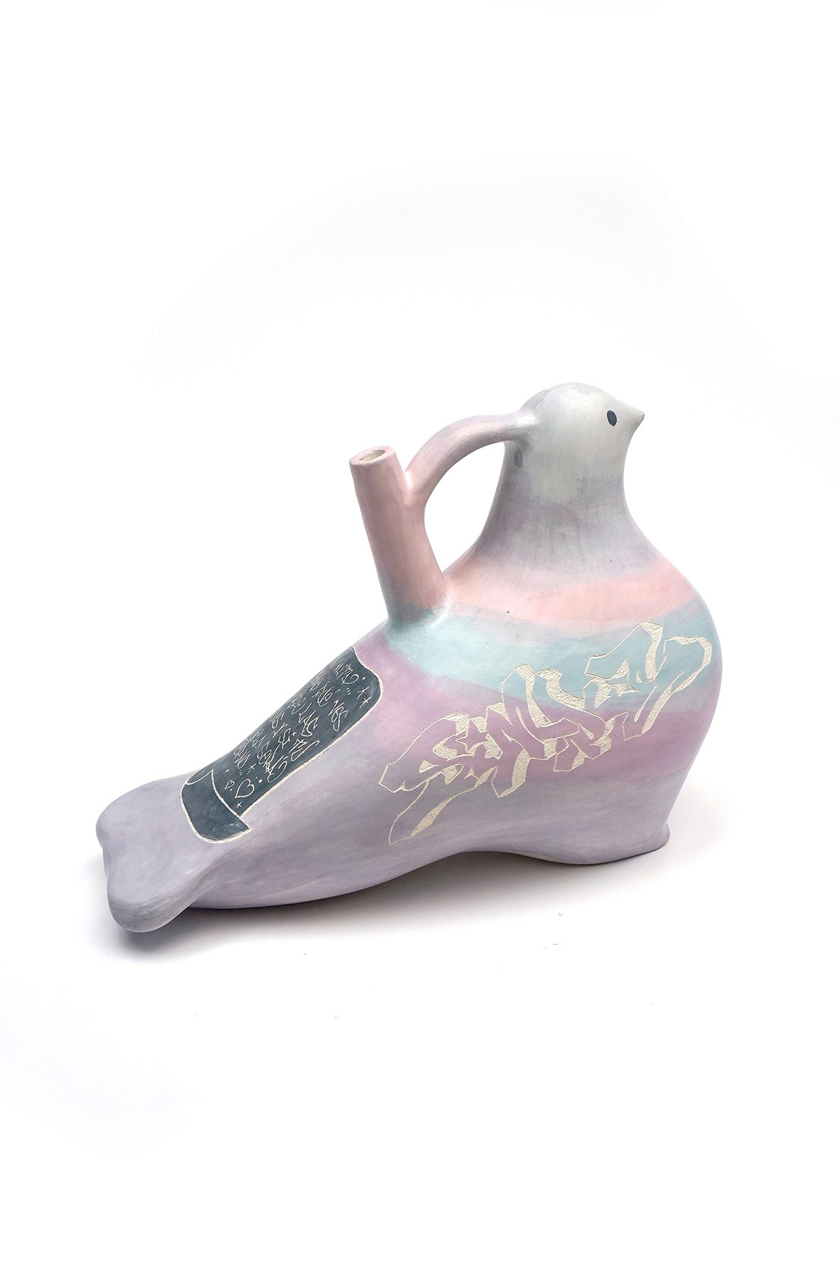 M V Je m’appelle Martín Vázquez Pinto. Je fais du graffiti depuis l’âge de quatorze ans et je travaille la céramique depuis six ans. L’une de mes principales influences, quand je fais de la céramique, reste la culture hip-hop : les flèches, les étoiles, la brillance, les icônes classiques du graffiti. Ce qui m’intéresse, c’est de les introduire dans le langage de la céramique et d’observer comment ces codes dialoguent.